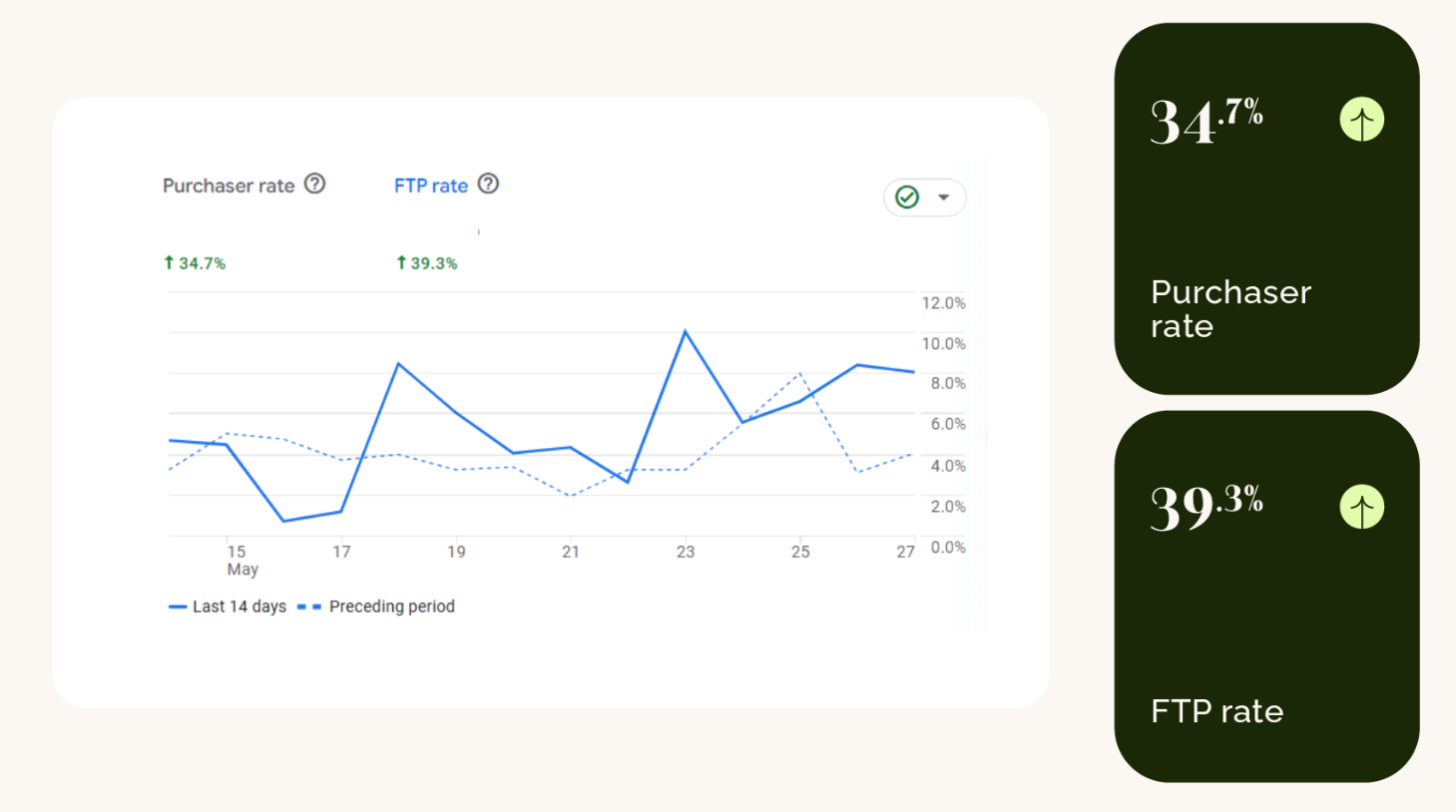 Purchaser Rate | Clearer offers and product guidance | +34.7% overall purchaser rate |
